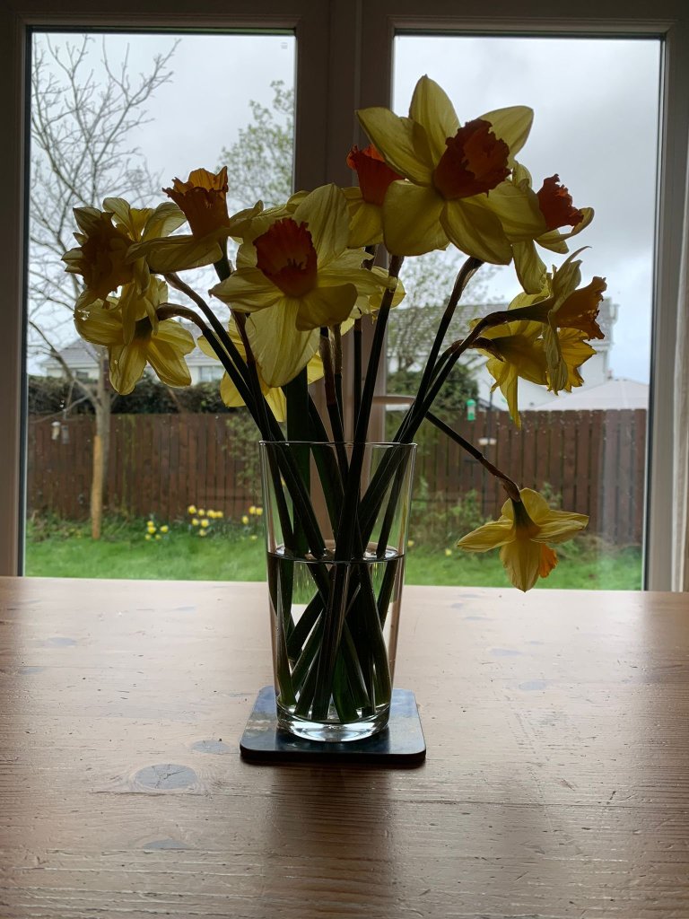 Look at that bunch of flowers. There is one that doesn’t fit in. Do you see it as broken or imperfect? Is that how you see yourself? Maybe because I am so aware of my own frailties, I am feeling a little defensive of that flower. Just because it does not fit perfectly into the picture does not mean it is not a daffodil. It is as much part of the bunch as any of the others. In fact, its very brokenness means it will be remembered longer than the rest.